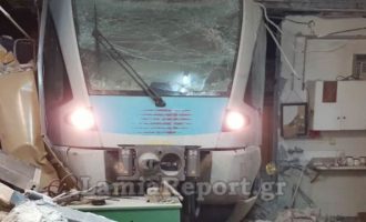 Εκτροχιάστηκε τρένο στη Λαμία – Σφήνωσε σε αποθήκη και την έλιωσε (φωτο+βίντεο)