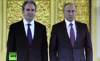 Στο υπουργείο Εξωτερικών της Ρωσίας εκλήθη ο Έλληνας πρέσβης στη Μόσχα, Ανδρέας Φρυγανάς (αριστερά στη φωτό, δίπλα στον κ. Πούτιν),…
