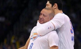 Ο Ενές Καντέρ κάνει κεφαλοκλείδωμα στον Ερντογάν