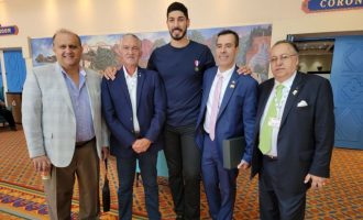 Ο εχθρός του Ερντογάν μπασκετμπολίστας Ενές Καντέρ στο συνέδριο του ελληνικού τάγματος των AHEPA