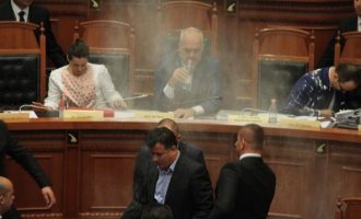 Βουλευτές της αντιπολίτευσης αλεύρωσαν τον Ράμα μέσα στη Βουλή (βίντεο)