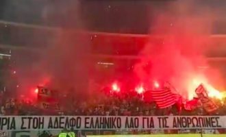 Πανό συμπαράστασης του Ερυθρού Αστέρα προς τον ελληνικό λαό (βίντεο)