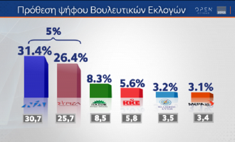 Δημοσκόπηση Open: Στις 5 μονάδες η διαφορά ΝΔ-ΣΥΡΙΖΑ – Που τοποθετούνται οι αναποφάσιστοι