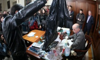 Φοιτητές άδειασαν μια σακούλα με σκουπίδια πάνω στο γραφείο του αντιπρύτανη του Πανεπιστημίου Αθηνών Αντώνη Καλοκαιρινού στο κεντρικό κτίριο του…
