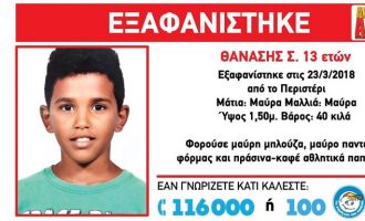 Οργανωμένη επιχείρηση αρπαγής» του 13χρονου Θανάση, ο οποίος αγνοείται από την περασμένη Παρασκευή, διακρίνει το Χαμόγελο του Παιδιού, εκτιμώντας πως…