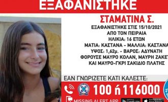 Εξαφανίστηκε από την περιοχή του Πειραιά την Παρασκευή (15.10.2021) η 16χρονη Σταματίνα Σ. και έχει σημάνει συναγερμός για τον εντοπισμό…