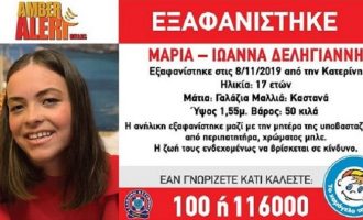 Στις 08/11/2019, και ώρα 14.00 μ.μ., εξαφανίστηκε από την Κατερίνη, η Μαρία – Ιωάννα Δεληγιάννη, 17 ετών. «Το Χαμόγελο του…
