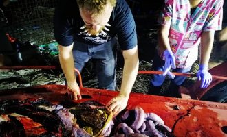 Φάλαινα πέθανε αφού κατάπιε 40 κιλά πλαστικές σακούλες στις Φιλιππίνες. Οι βιολόγοι και οι εθελοντές από το μουσείο D’ Bon…