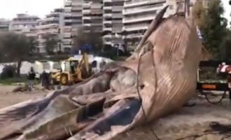 Πτεροφάλαινα επέπλεε νεκρή 1,5 μίλι από τις ακτές του Πειραιά – Ρυμουλκό τη μετέφερε στη Φρεαττύδα