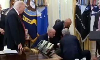 Ο Ντόναλντ Τραμπ παρακολουθούσε άναυδος τον Γκόρντον Φίντλεϊ καθώς η Ασφάλεια έσπευδε να του παράσχει βοήθεια. Το Οβάλ Γραφείο βυθίστηκε…