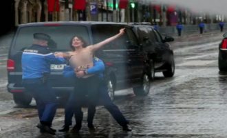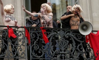 Δύο ακτιβίστριες της FEMEN πραγματοποίησαν γυμνόστηθη διαδήλωση εναντίον του Ρώσου Προέδρου Βλαντιμίρ Πούτιν έξω από το Elysee Palace στο Παρίσι….