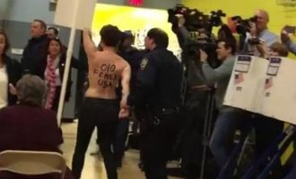 Γυμνόστηθες εισέβαλαν σε εκλογικό κέντρο με συνθήματα κατά του Τραμπ (βίντεο)