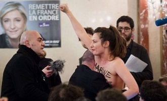 Τα έψαλλε στην Μαρίν Λεπέν μέλος της οργάνωσης Femen. Η γυναίκα έκανε «ντου»σε ομιλία της επικεφαλής του ακροδεξιού Εθνικού Μετώπου…