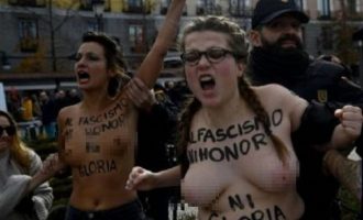 Γυμνόστηθες διαδηλώτριες εισέβαλαν σε διαδήλωση υπέρ του Φράνκο στη Μαδρίτη (φωτο)
