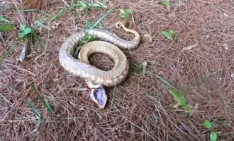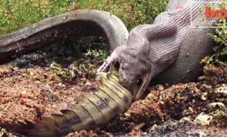 Θα πάθεις ΣΟΚ! Γιγάντιο φίδι καταβροχθίζει κροκόδειλο (βίντεο)