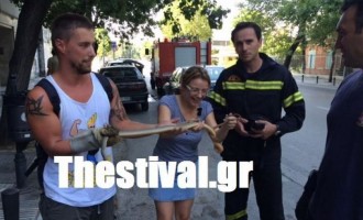 Έπιασαν φίδι 2,5 μέτρων στο κέντρο της Θεσσαλονίκης (φωτογραφίες)