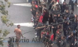 Συνελήφθη ο γυμνός… μοϊκανός στο πανεκπαιδευτικό (φωτογραφίες)
