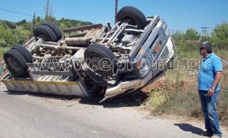 Σκύλος έφερε τούμπα φορτηγό του Δήμου Ήλιδας (φωτογραφίες)