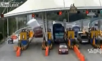 Φορτηγό έπεσε πάνω στα διόδια (βίντεο)