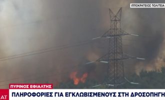 Η φωτιά πέρασε την Εθνική Οδό στο ύψος των Αφιδνών – Κινείται προς Καπανδρίτι και Άγιο Στέφανο
