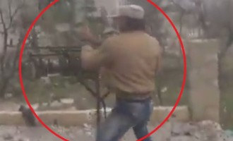 Ένας τζιχαντιστής του Ελεύθερου Συριακού Στρατού (FSA), οπλισμένος με ένα βαρύ οπλοπολυβόλο, νομίζει ότι είναι τουλάχιστον ο Ράμπο. Στο βίντεο βλέπουμε…