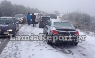 Εγκλωβίστηκαν οδηγοί από το χιόνι στη Φθιώτιδα (φωτογραφίες)