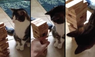 Απίστευτο! Έμαθαν στη γάτα τους να παίζει Jenga
