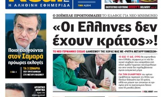 Με τίτλο: “Οι Έλληνες δεν έχουν κράτος”! κυκλοφορεί αυτήν την Κυριακή η Realnews, αναφερόμενη στον Βόλφγκανγκ Σόιμπλε, ο οποίος “προετοιμάζει…