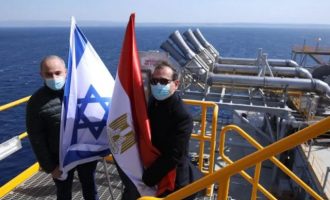 Στην εξέδρα του κοιτάσματος Λεβιάθαν Ισραηλινός και Αιγύπτιος υπουργοί Ενέργειας με τις σημαίες τους