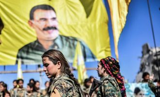 Ένα τεράστιο λάβαρο με την εικόνα του Αμπντουλάχ Οτσαλάν, ηγέτη του Εργατικού Κόμματος του Κουρδιστάν (PKK), υψώθηκε στο κέντρο της…