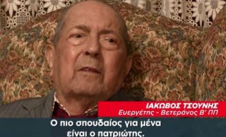 Απίστευτη κίνηση πατριωτισμού έκανε 97χρονος εφοπλιστής, βετεράνος του Β’ Παγκοσμίου Πολέμου, Ιάκωβος Τσούνης, ο οποίος αφήνει όλη του την περιουσία…