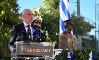 Ο Νίκος Δένδιας με αποτροπιασμό για τους «πουρκουάδες» στην τελετή αποκαλυπτηρίων της προτομής του Έκτορα Γιαλοψού