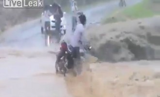 Το βίντεο καταγράφει την τραγική στιγμή που ένας μοτοσικλετιστής παρασύρεται από τα φουσκωμένα νερά ποταμού στην Ινδία. Πρόκειται για απίστευτη…