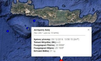 Σεισμός 4,3 Ρίχτερ νότια της Κρήτης