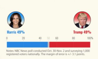 Δημοσκόπηση NBC: Απόλυτη ισοπαλία μεταξύ Χάρις και Τραμπ δύο 24ωρα πριν από την κάλπη