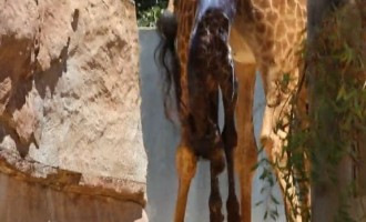 Η καμηλοπάρδαλη στον ζωολογικό κήπο του Σαν Ντιέγκο στην Καλιφόρνια γεννάει σε ώρα αιχμής. Οι επισκέπτες καταγράφουν το γεγονός και…