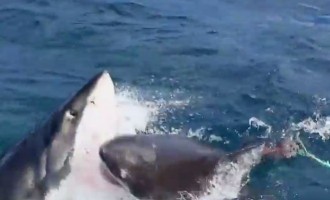 Βίντεο: Λευκός καρχαρίας επιτίθεται με μανία σε φουσκωτό σκάφος
