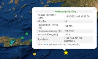 Ισχυρότατος σεισμός 6,1 Ρίχτερ ανατολικά της Καρπάθου