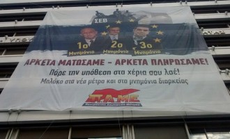Το ΠΑΜΕ, δηλαδή το ΚΚΕ, κατέλαβε το Υπουργείο Οικονομικών νωρίς το πρωί της Πέμπτης και ανάρτησε ένα τεράστιο πανό, πάνω…