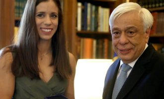 Ο Πρόεδρος της Δημοκρατίας, Προκόπης Παυλόπουλος, υποδέχθηκε τη Δευτέρα στο Προεδρικό Μέγαρο την παγκόσμια πρωταθλήτρια στο άλμα επί κοντώ, Κατερίνα…
