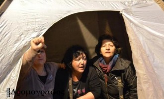 Αντίσκηνο έξω από το ΥΠΟΙΚ έστησαν οι καθαρίστριες (εικόνες)