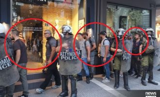 Δίπλα στα ΜΑΤ κάθονται στην πορεία που πραγματοποιείται ενόψει των εγκαινίων της ΔΕΘ, άτομα που φορούν full face και έχουν…