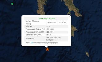 Σεισμός 5,2 Ρίχτερ νότια των Κυθήρων