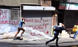 Η τουρκική αστυνομία έκανε σήμερα χρήση δακρυγόνων για να διαλύσει διαδηλωτές που έριχναν βόμβες μολότοφ και πέτρες στη συνοικία Οκμεϊντάνι…