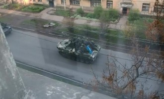 Δεκάδες τανκς και τεθωρακισμένα οχήματα μεταφοράς προσωπικού με υψωμένες τις ρωσικές σημαίες καταγράφει το βίντεο που μετέδωσε το κανάλι Εσπρέσο….