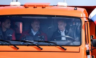 Ο Ρώσος πρόεδρος Βλαντίμιρ Πούτιν, οδηγώντας ένα φορτηγό μάρκας Kamaz, διέσχισε την γέφυρα της Κριμαίας, η οποία ενώνει την Ρωσία…