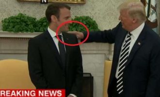Σόου Τραμπ: Τίναξε… πιτυρίδα από το μαύρο σακάκι του Μακρόν (βίντεο)