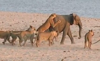 Για πάρα πολύ ώρα ο νεαρός ελέφαντας δίνει μια απίστευτη και άνιση μάχη με 14 λιοντάρια. Μάλιστα το ένα λιοντάρι…