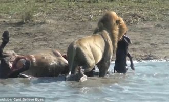 Κροκόδειλος εναντίον λιονταριού: Δείτε ποιος νίκησε (βίντεο)