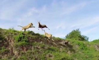 Λιοντάρι πιάνει αντιλόπη… στον αέρα! (βίντεο)